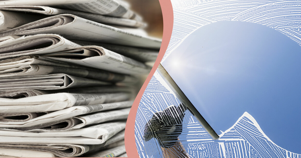 FIn the past, people cleaned window panes with newspaper because the paper contained ammonia in the printing ink, which is a good detergent. But because ammonia is toxic, today’s newspapers are printed without the substance. Therefore, using newspaper is pointless, it can even make the windows dirtier.